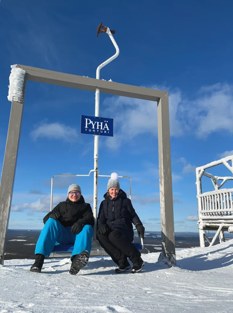 100 km nördlich von Rovaniemi befindet sich der Pyhä-Luoston Nationalpark, mit den beiden Skigebieten „Lappland Ski Resort Luosto“ und „Pyhä Ski Resort“. Von beiden kannst du einen atemberaubenden Ausblick in die Weite Lapplands genießen. In dem Skigebiet „Pyhä Ski Resort“ sind wir mit der Gondel auf den Gipfel Pyhätunturi hochgefahren. Die Skigebiete sind klein, aber auch ruhig und perfekt, um dem Trubel von Rovaniemi zu entkommen. Die Preise für den Skipass fanden wir im Vergleich zu Österreich günstig. In dem gesamten Nationalpark gibt es genügend Parkplätze, an denen du halten kannst um Skilangzulaufen oder wandern zu gehen.